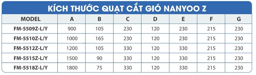 Chuyên cung cấp, phân phối Quạt cắt gió công nghiệp Nanyoo FM-5510Z-L/Y